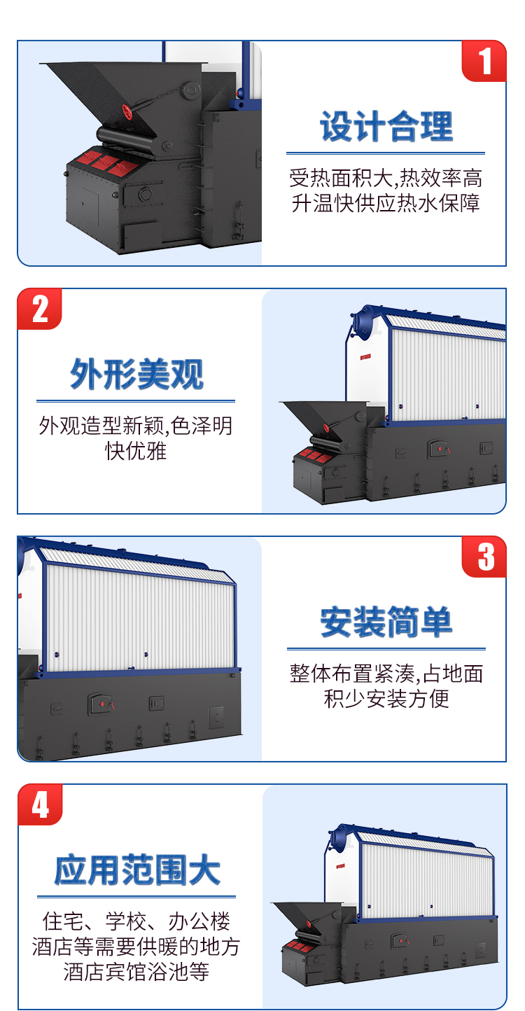 適用燃料:生物質顆粒、鋸末、甘蔗渣、稻糠、木塊、木屑,花生殼、木柴、棉桿、菌類根莖等