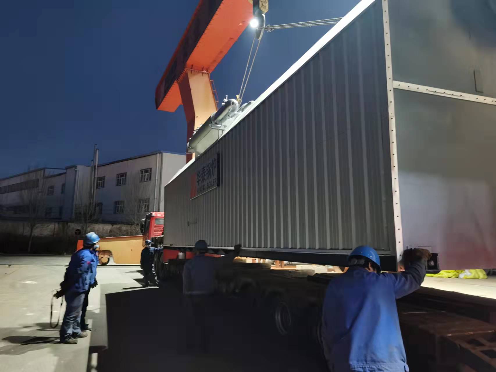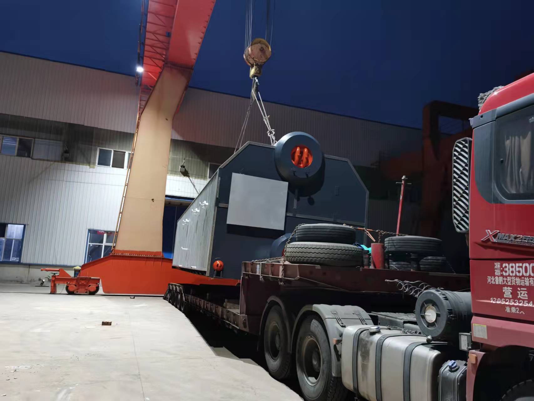 晚11點,華泰鍋爐發(fā)貨處仍是燈火通明,廠區(qū)內(nèi)停滿了等候的貨運卡車。據(jù)悉,本次發(fā)貨的是SZL系列生物質(zhì)鍋爐。
