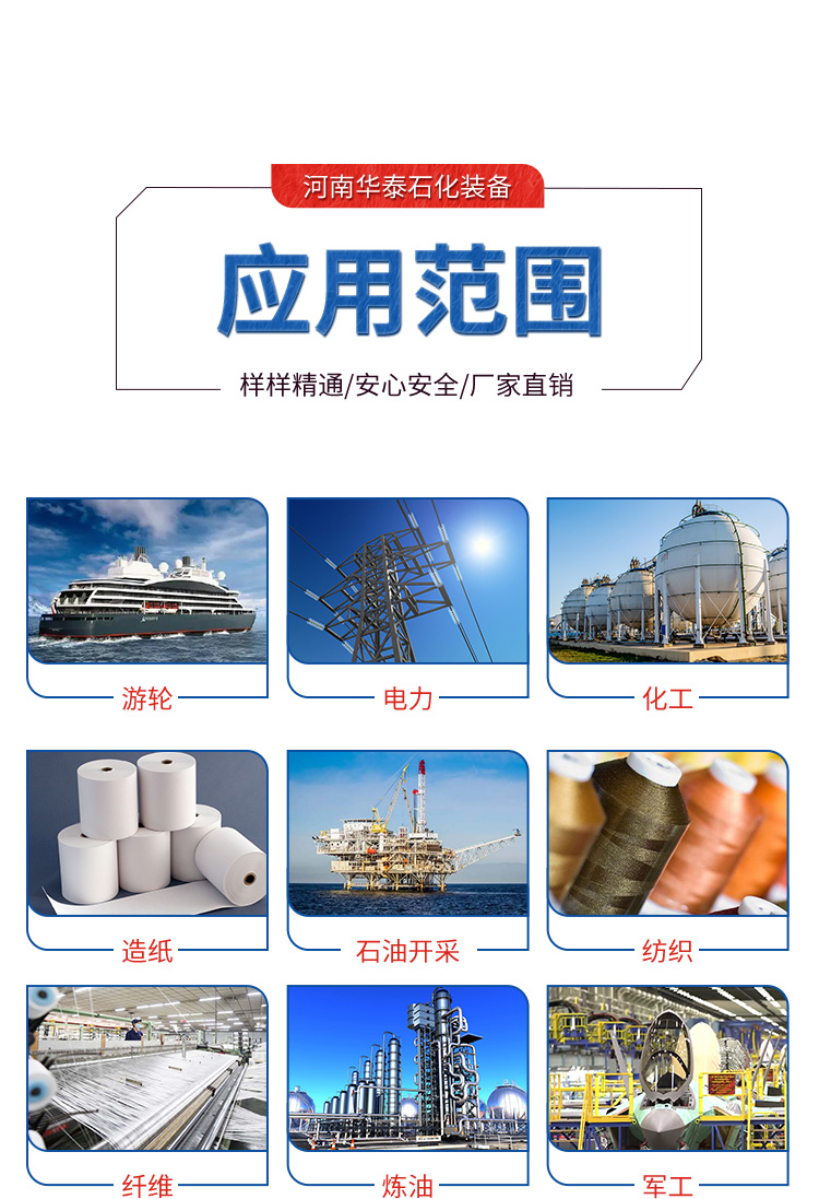 應用范圍:石油、化工、化纖、醫藥、紡織印染、建材、木材加工、植物油加工等行業