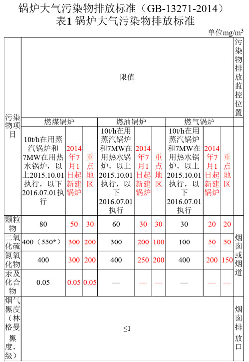 目前,鍋爐行業(yè)須參考國標(biāo)《鍋爐大氣污染物排放標(biāo)準(zhǔn)》(GB-13271-2014)實(shí)施排放,具體要求如下:
