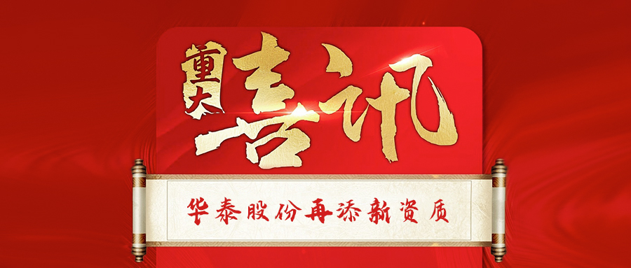 您當前的位置 : 首頁 > 新聞中心> 喜報丨華泰股份榮獲《工業管道(GC2)、公用管道(GB2)安裝資質》、企業資質再升級