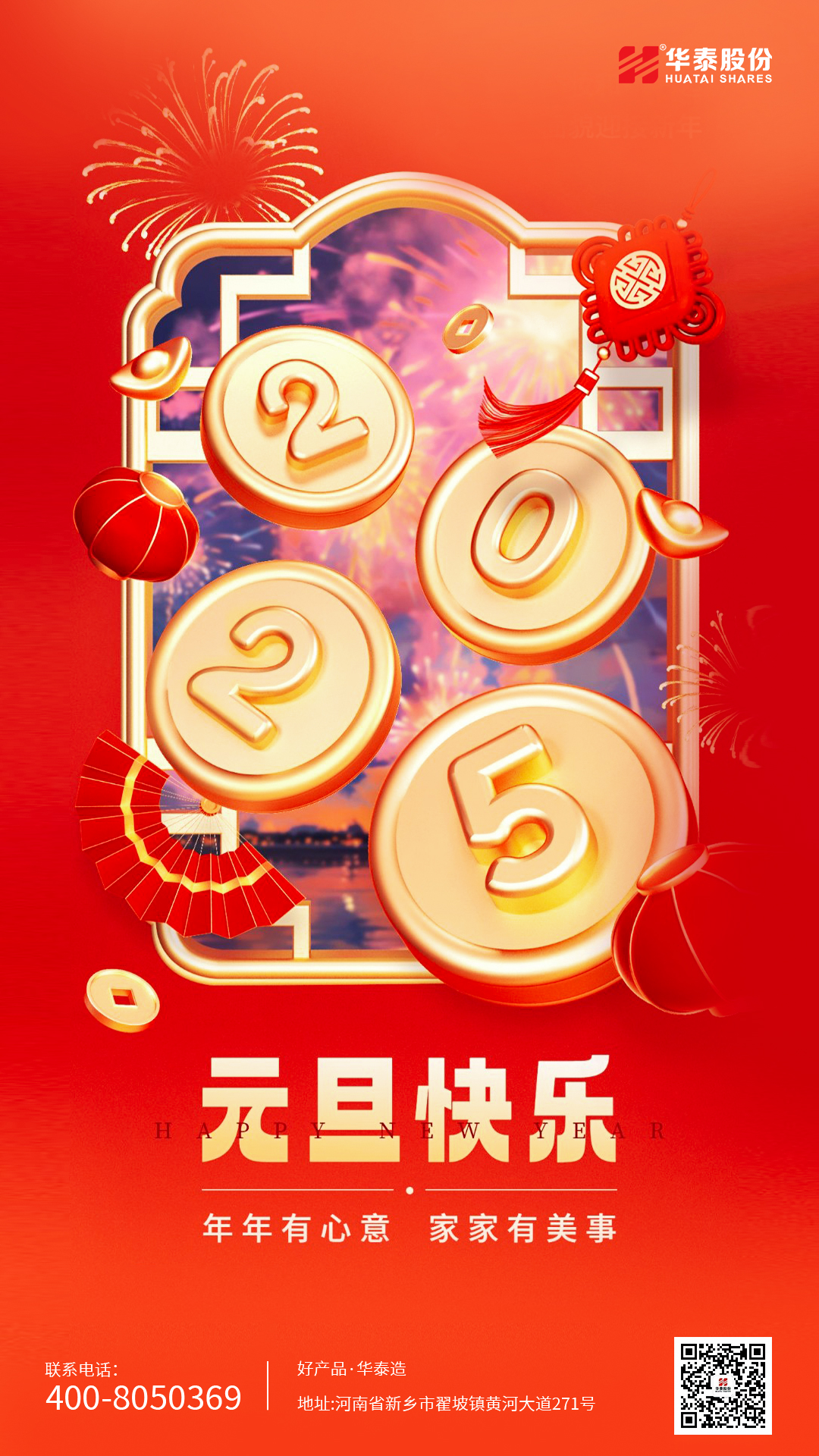 歲序更替、華章日新。送別跌宕起伏、飽含汗水與收獲的2024,迎來步履鏗鏘、充滿希冀和期待的2025。在2025年的鐘聲即將敲響之際,華泰股份向全體員工及其家屬,向支持和信任華泰股份的廣大客戶、合作伙伴和各界朋友,致以節日的問候和新年的祝福!