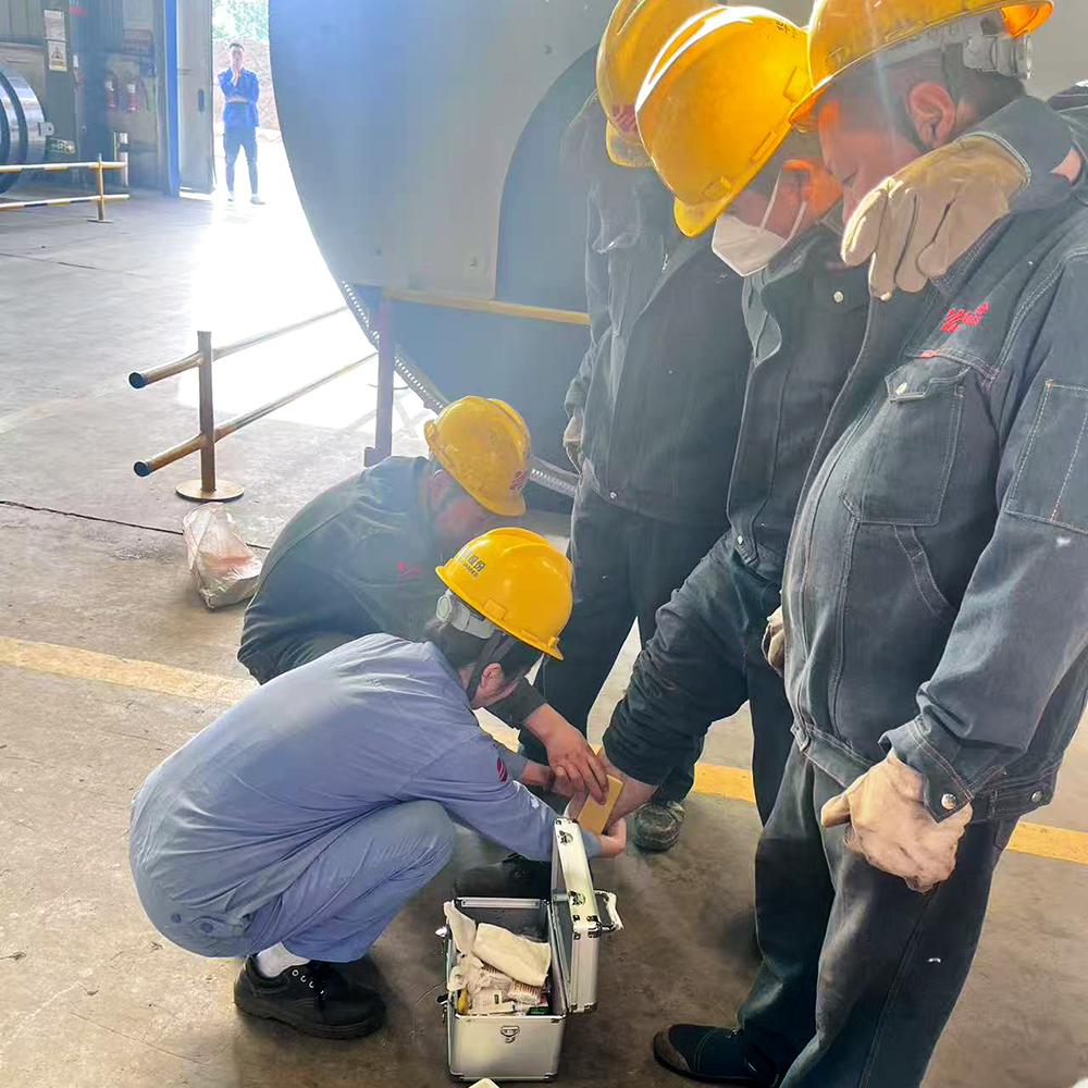 應(yīng)急救援組迅速響應(yīng),攜帶醫(yī)藥箱等專業(yè)設(shè)備第一時間抵達現(xiàn)場,對傷者進行止血包扎并穩(wěn)定其情緒。與此同時,警戒組迅速封鎖事故區(qū)域,拉設(shè)警戒線,確保救援通道暢通無阻。整個演練過程緊張有序,各小組分工明確,配合默契,從事故發(fā)生到傷員轉(zhuǎn)移救治,用時短暫,充分展現(xiàn)了高效的應(yīng)急處置能力。